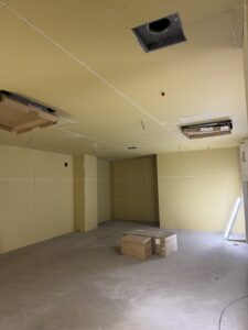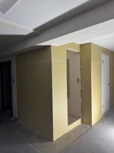 ある住宅では、旦那様専用の音楽ルームに石膏ボードが活用されました。壁には遮音シートと二重の石膏ボードを使用し、防音性能を強化。快適な音楽環境を実現しつつ、家族の生活空間への音漏れも防ぎました。